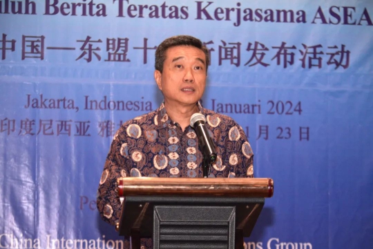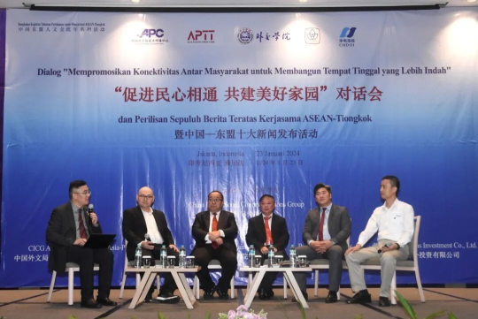1月23日,中国—东盟人文交流年系列活动之“促进民心相通 共建美好家园”对话会暨中国—东盟合作十大新闻发布活动在印度尼西亚首都雅加达举行。本次活动以“交流 理解 互信 共赢”为主题,由中国外文局指导,中国外文局亚太传播中心(人民中国杂志社、中国报道杂志社)、外交学院、印度尼西亚总统大学、亚太智库等联合主办。