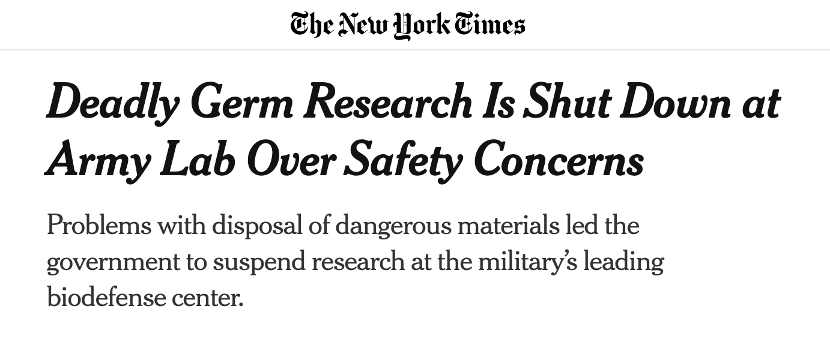 报道称,暂停的实验室研究中,涉及某些已被政府认定为“对公众、动植物健康或动植物产品构成严重威胁”的毒素。
