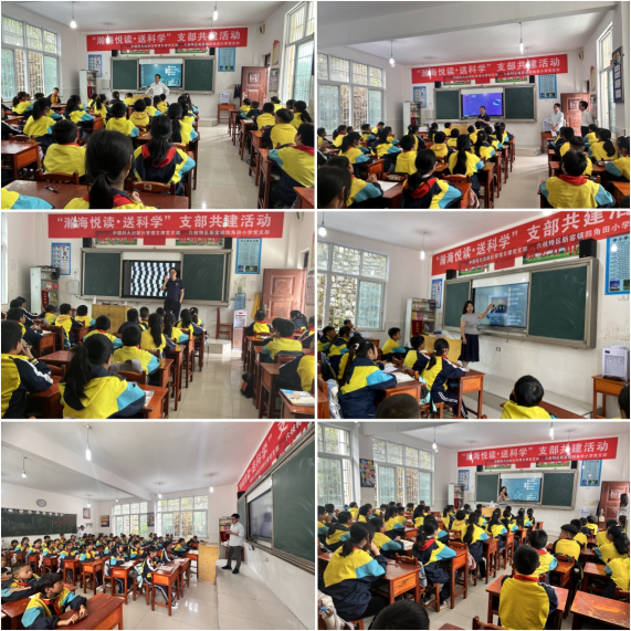 出版社管理支撑党支部面向五六年级两个班的学生开展了“瀚海悦读·送科学”科普阅读志愿服务活动,蒋家杰为活动致开场辞。教室内,李攀峰、张灿、徐萍进行科普数字读物演示,带领学生们体会了“坐着时间去飞行”的乐趣,感受了交互体验的科学实验的精彩;孔庆勇给学生们作“关于科学馆的科普讲座”,通过介绍多种多样的科学现象开拓了学生们的科学视野;黄柯组织学生进行“优美的光学——分色棱镜的奥秘”科学实验互动,使学生们通过绚丽的色彩感受了光学的奇妙。