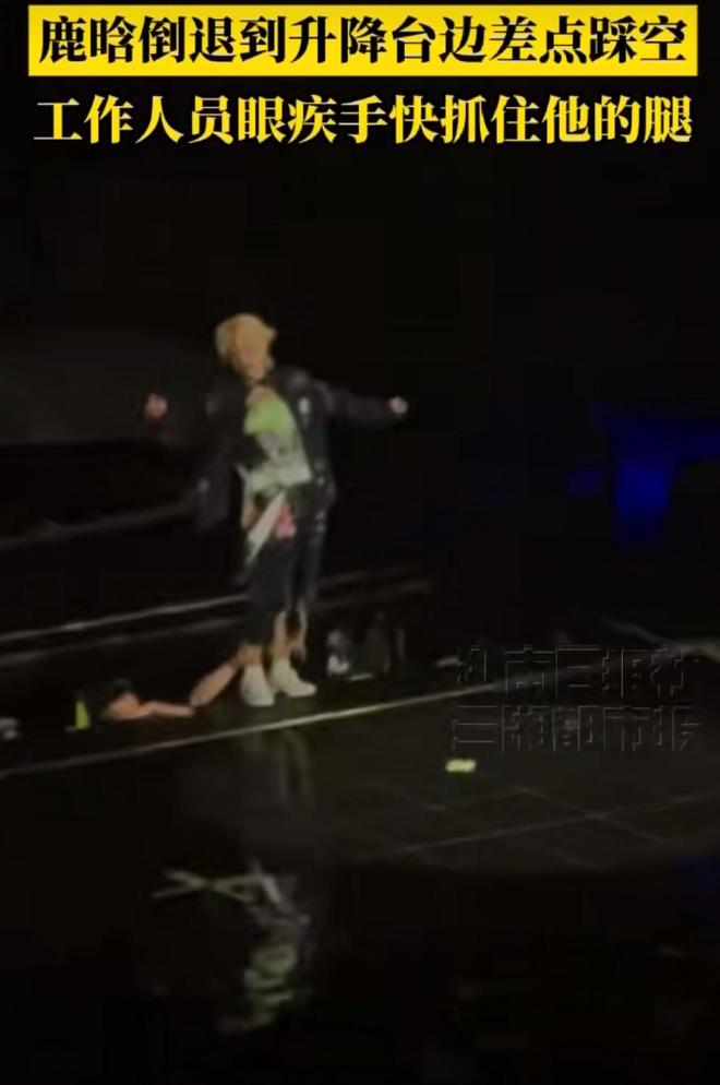 就在8月22日,鹿晗的深圳演唱会上,也出现了类似的一幕,鹿晗对身后已经下去的升降台毫不知情,眼看着就要踩下去酿成大事故。