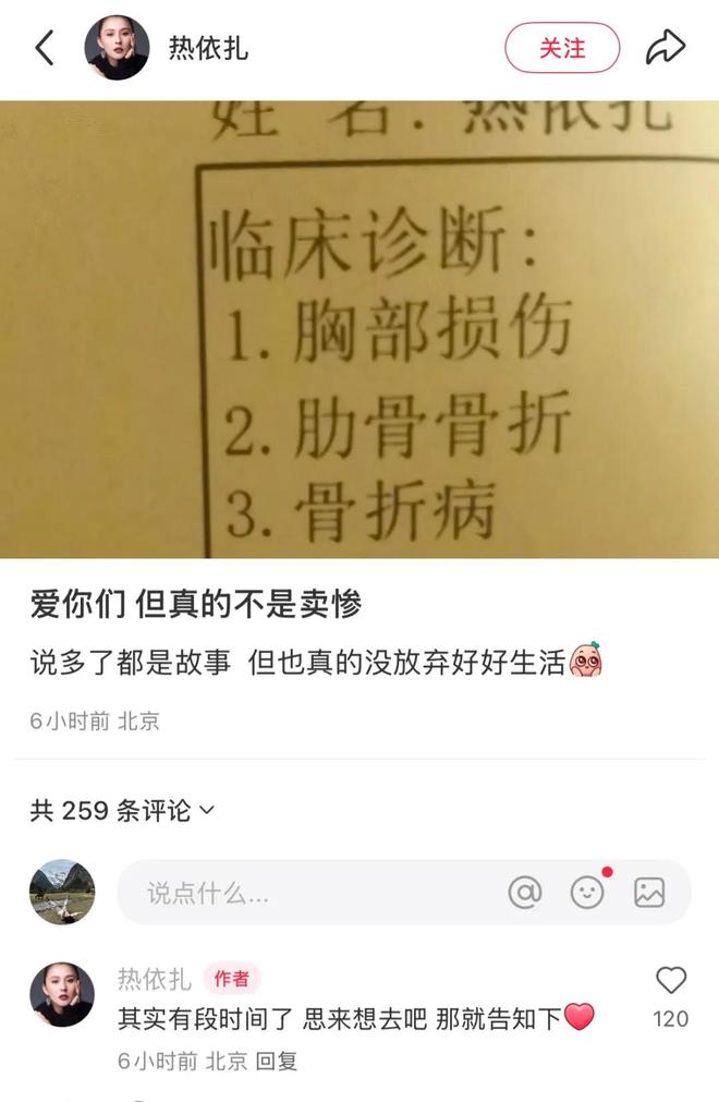 在娱乐圈,热依扎虽然算不上顶流,可也是很有知名度的,昨日她在社交平台上的一则病历单,让很多人都感到匪夷所思。