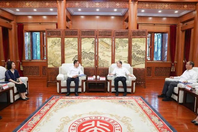 北京大学党委书记何光彩,北京大学党委副书记、统战部部长姜国华,工学院院长、中国科学院院士段慧玲,鄂尔多斯能源研究院院长、中国科学院院士金之钧会见成涛一行并会谈。