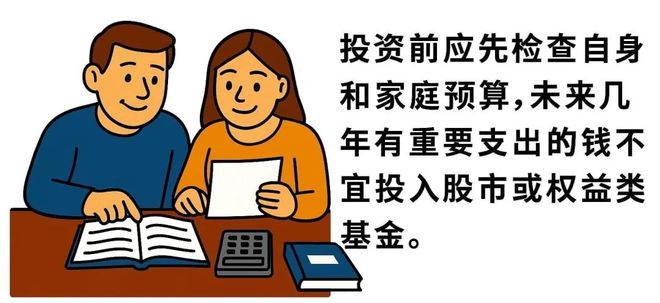 在投资权益类资产之前首先要重新检查一下自己及家庭的财政预算情况。 如果这笔打算投进股市或者权益类基金的钱,在两三年之内要拿出来用于孩子上学或者房屋装修之类的,那么就不应该把这笔钱用来投资。如果没有极端情况的线年的趋势相对来说是可预见的,但至于未来两三年内股票的价格是涨还是跌,对于这个问题预测的准确概率可能就和掷硬币猜正反面的概率差不多。