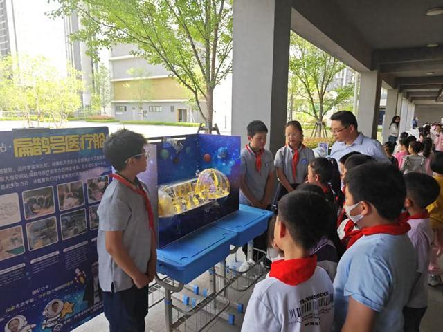 在航空航天科创作品展示区,由学生研发设计的“火星探测车”、创意“火星基地”、未来“航天探测器”、“地球陨石防御系统”等展品有序陈列。学生们化身“小小讲解员”,生动介绍着自己创意无限的航天器设计的工作原理、航天站的生活细节,带大家领略浩瀚宇宙的奥秘,展现出对航天科学的浓厚兴趣与深入探索。