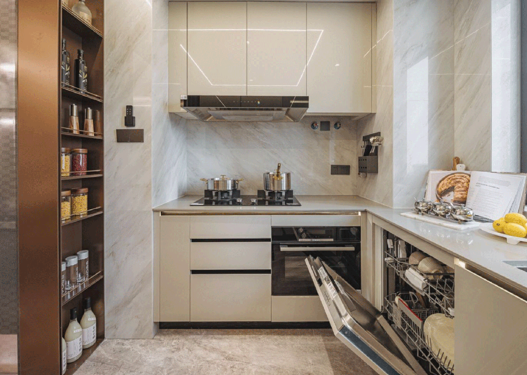 先说收纳,保利·海上瑧悦基于用户在玄关场景下的常用功能,在玄关处交付了约2.8米的超长玄关收纳柜,同时,针对餐厨收纳【保利·海上瑧悦】创新打造900mm立案的双面岛台收纳空间,将厨房收纳扩容30%,这在同级别产品中十分罕见。