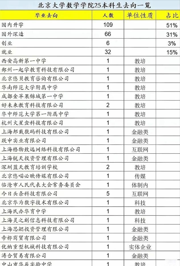 在公众眼中,北京大学数学科学学院作为国内数学领域的顶尖学府,其毕业生理应是科研机构、金融巨头和科技企业竞相争夺的对象。