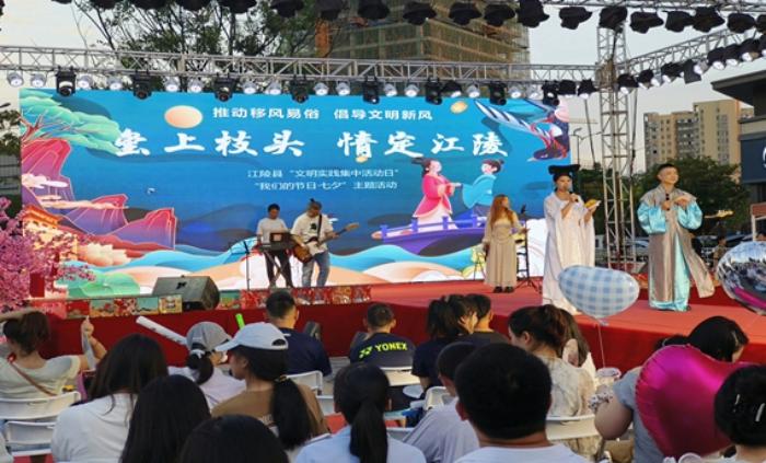 8月28日晚,江陵县“文明实践集中活动日”暨“我们的节日·七夕”主题实践活动在江陵县实创·悦玺营销中心广场开展。活动由江陵县委宣传部主办,县科协、团县委等多部门协办。