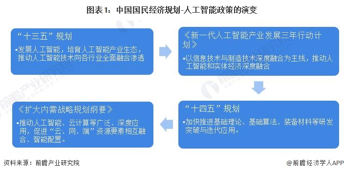 人工智能作为新一代信息技术产业中的核心产业,是引领新一轮科技革命和产业创新的关键驱动力。根据我国国民经济“十三五”规划到“十四五”规划,国家对人工智能行业的发展规划经历了从重视发展技术到促进产业深度融合的变化。、