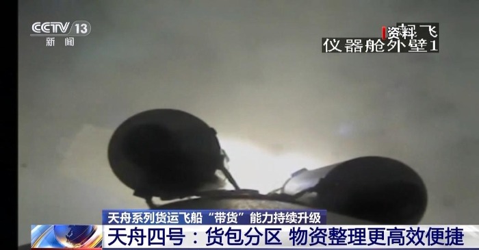 2022年5月10日,天舟四号货运飞船逐梦寰宇。天舟四号装载了神舟十四号3名航天员6个月在轨驻留消耗品、应用实验和试验装置等物资。这次飞船增加了货包色彩标识,即使用不同颜色的标签区分不同系统的货物,以便航天员更直观地区分生活物资或需转移的物资。