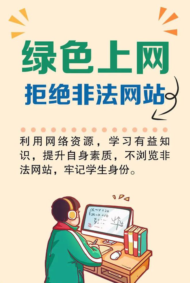 2. 教育孩子正确使用网络,严禁在网络上发布,转发虚假消息;教育孩子不浏览不健康网页,不要随意注册不熟悉的网站账号,不痴迷游戏,文明上网、绿色上网;