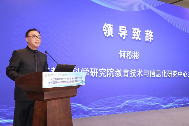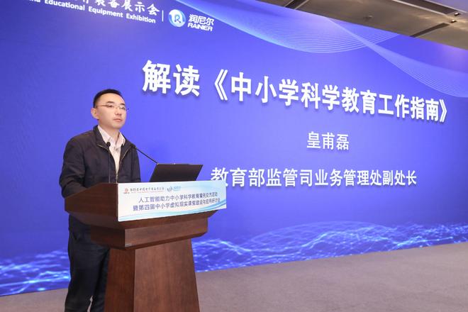 教育部监管司业务管理处二级调研员皇甫磊介绍了中小学科学教育工作情况,阐述其重要意义、工作方向,并探讨人工智能助力中小学科学教育的作用与挑战。他表示,在科学教育工作推进过程中,要注重形成可复制可推广的优秀案例和课例,加强交流,共同提升中小学科学教育质量和水平。
