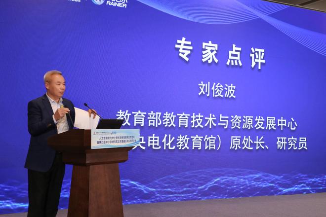 教育部教育技术与资源发展中心原处长刘俊波对上述课例进行了精彩点评,为一线教师的教学实践提供了专业的指导和建议。他认为虚拟现实和人工智能的结合能够解决科学教育中的很多实验难点,同时也能够创新实验的方法,允许学生开展多路径探究。学生在学习的过程中还能够实时与智能体交流获得解答。大大方便了教师的“教”、学生的“学”。