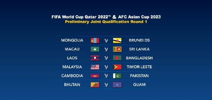 根据抽签结果,马来西亚对阵东帝汶、蒙古国对阵文莱、中国澳门对阵斯里兰卡、老挝对阵孟加拉国、柬埔寨对阵巴基斯坦、不丹对阵关岛。