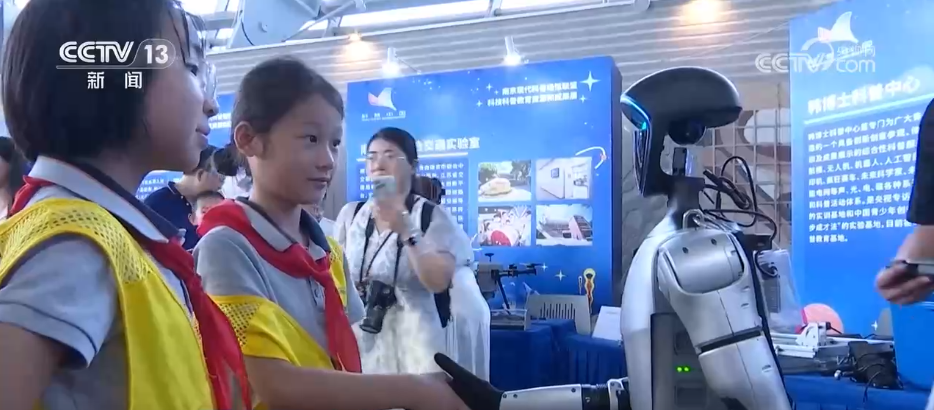 9月6日,南京科技馆内光影流转、笑声阵阵,一场别开生面的科学研学活动正在火热进行。展厅中央的演示台前,讲解员正手持操控设备,为大家演示机器人的灵活动作。随着指令发出,人形机器人精准地做出拟人化动作,引得孩子驻足观看。