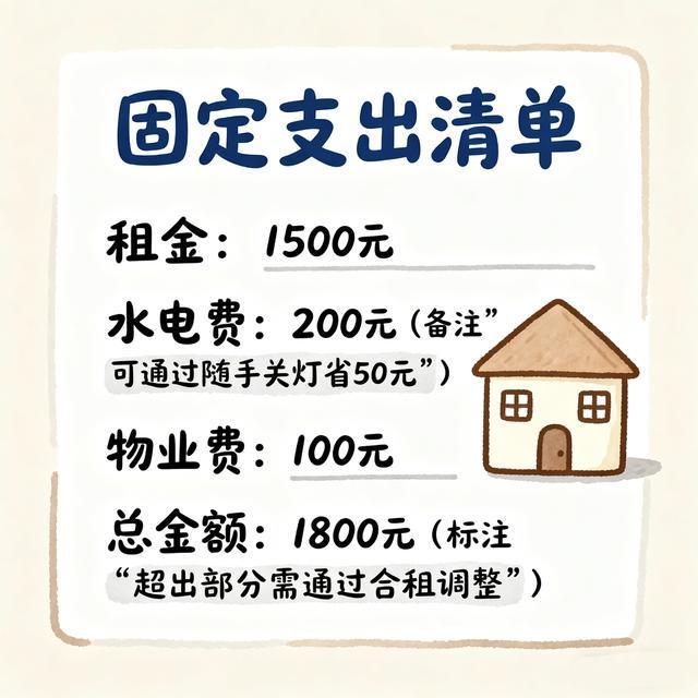 这部分钱是“生存必备钱”,用来支付每个月雷打不动要花的钱,比如房租、水电燃气费、物业费、房贷车贷(如果有的话)、还有每月固定要还的信用卡/花呗最低还款(建议尽量少用)。