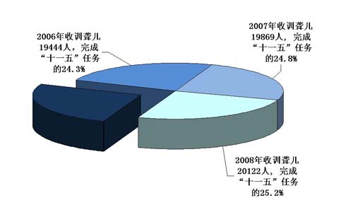加强省级聋儿康复机构建设,完善聋儿康复网络。全国共对20122名聋儿进行了听力语言康复训练,规范聋儿家长学校,开展家庭训练,共培训聋儿家长24314名;培养各类专业人员5417人次;实施彩票公益金聋儿康复救助项目,资助贫困聋儿6000名,为贫困聋儿配戴助听器12000台。