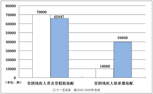 深入开展辅助器具供应服务,全面推进普及型假肢装配,截止到2008年底,累计建立辅助器具供应服务机构2203个,为残疾人减免费用装配普及型假肢2.6万例,供应辅助器具109.5万件,装配矫形器1.2万例。