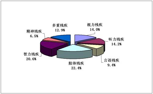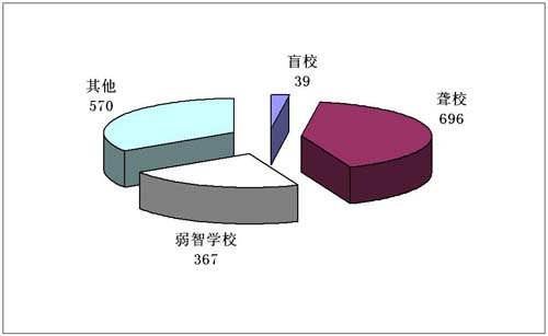 截止到2008年底,全国未入学适龄残疾儿童少年总数22万余人,其中视力残疾3.1万人,听力残疾3.1万人,言语残疾2.1万人,智力残疾4.5万人,肢体残疾4.9万人,精神残疾1.4万人,多重残疾2.8万人。