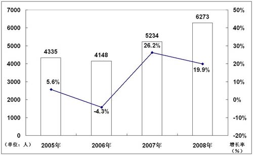 2008年,中国残疾人事业统计工作紧紧围绕“十一五”发展纲要的工作重点,顺利完成年度统计工作任务,配合全国残联工作会议、五代会等重大会议和2008年奥运会、残奥会等重大活动提供了重要的数据支持;建立省级残联统计工作考核机制和通报制度,促进提高统计工作效率和质量;积极开展统计数据分析、应用与服务,及时编制印发了快报统计资料、残疾人事业统计年鉴和五年统计数据资料简册,为各级领导和各业务部门工作及时提供决策和工作管理的数据支持;继续推进基层统计台账建设,29个省、60%的县启动了电子台帐的填报工作;充分开发统计软件功能,统计工作水平得到提高;队伍建设进一步加强,全国各省、地(市)、县(市、区)级残联共有3339名专、兼职统计人员从事残疾人事业统计工作,其中15.3%取得统计从业资格证书;统计人员业务素质培养普遍得到重视,全国省级残联举办培训班32期,培训统计人员1406人次;地(市)级举办培训班266期,培训统计人员3335人次。