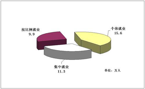 2008年,残疾人就业工作取得新的进展。城镇新安排36.8万残疾人就业。其中,集中就业的残疾人11.3万人,社会各单位按比例安排残疾人就业9.9万人,个体就业和多种形式灵活就业的残疾人15.6万人;农村残疾人参加生产劳动达1717.1万人。