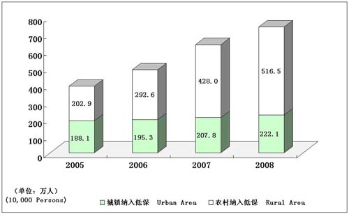 残疾人社会保障状况进一步改善。全国城镇已参加社会保险的残疾人达到297.6万人;在已经实行最低生活保障制度的城乡,共有738.6万残疾人享受到最低生活保障,62.7万残疾人在各类福利院、养老院享受集中供养、五保供养;377.3万残疾人得到临时救济和定期补助。