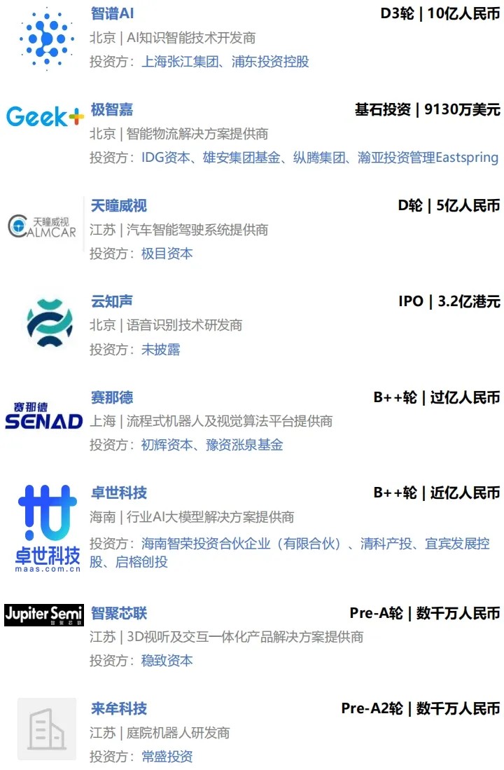 本周国内AI领域已披露融资总额为27.07亿元人民币。其中,融资额最高的为AI知识智能技术开发商智谱AI,宣布完成10亿人民币D3轮融资。
