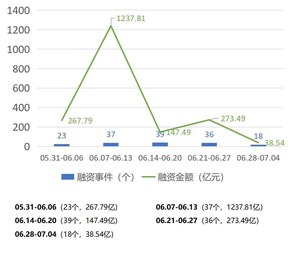 根据睿兽分析监测数据,本周全球披露的AI融资事件18起, 与上周相比减少18起,其中已披露融资金额的事件10个, 总融资规模为38.54亿元人民币, 平均融资金额为3.854亿元人民币。