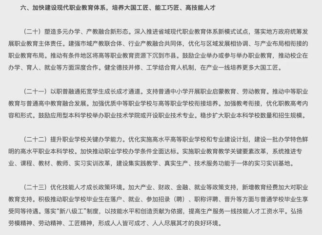 在高等教育方面,《纲要》提出高校将实行分类发展,划分为研究型、应用型、技能型等不同类别。职业本科教育的规模也将进一步扩大,培养更多高素质的技能人才。未来,技能型人才在就业和职称评定中将享受与学术型人才同等的待遇,这表明职业教育的社会认可度将大幅提升,不再被视为“次等”选择。