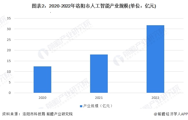 2022年,洛阳市围绕产业发展“136”工作举措,坚持创新引领、龙头带动、配套提升、集聚发展,抢抓人工智能产业关键环节,人工智能产业生态持续优化,产业发展取得一定进展,全市人工智能产业规模达到31.8亿元,较2021年增长76.6%。