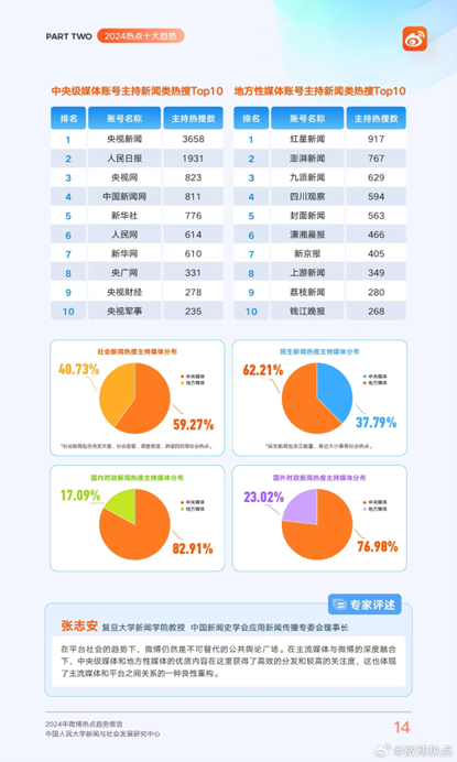 2024年,哪些民生话题在微博平台最受关注?大家透过这些民生热点关心些什么?哪些媒体在热搜榜主持了最多的新闻话题?自媒体在热点中又起到了什么作用?