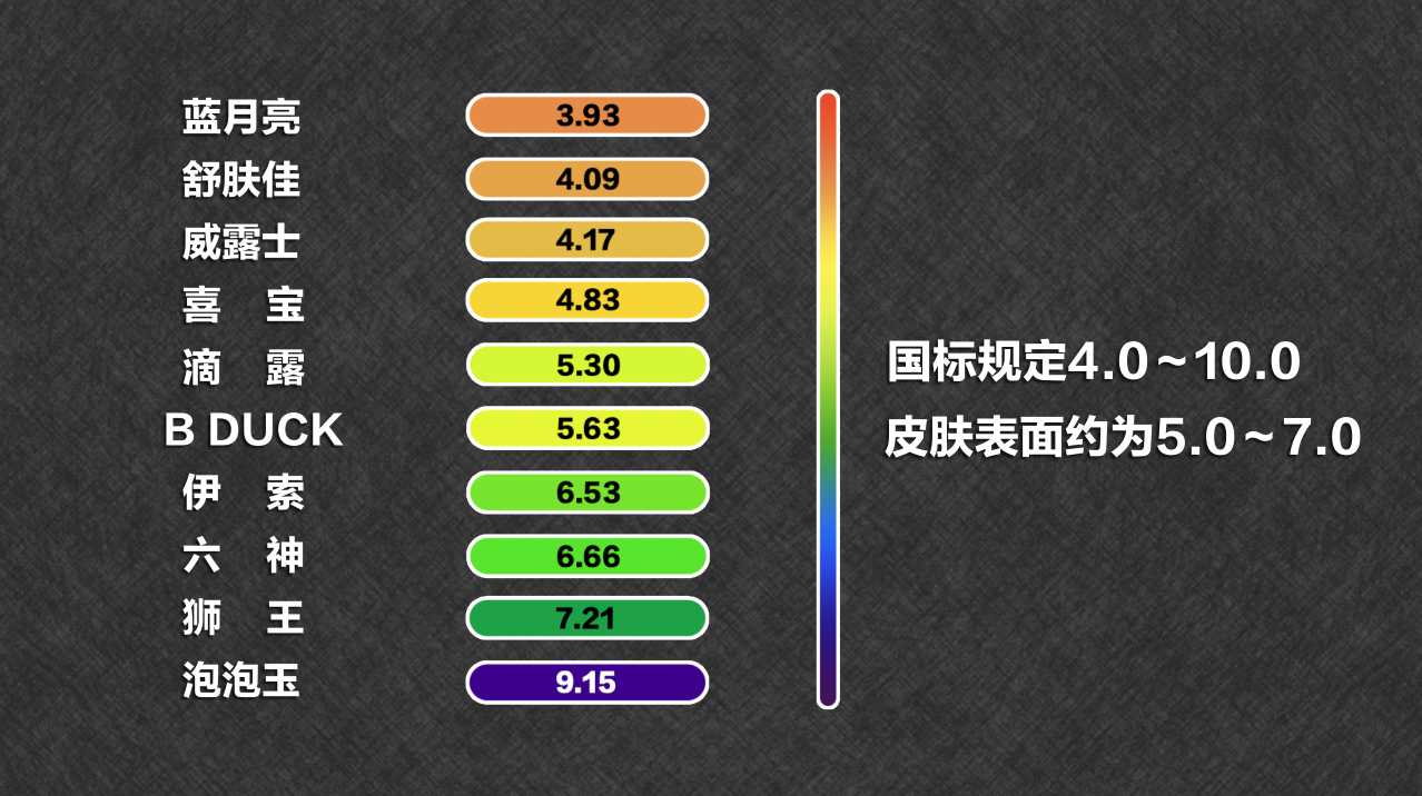 除了除菌去污以外,洗手液的PH值也是检验洗手液好坏的一个标准。洗手液的PH值在国标中有着明确的规定(4.0~10.0),但我们正常人皮肤表面PH值约为5.0~7.0之间,平均为5.8,呈现弱酸性。所以洗手液的PH值越接近这个平均值,在长期的使用过程中对我们皮肤损伤就越小,越温和。