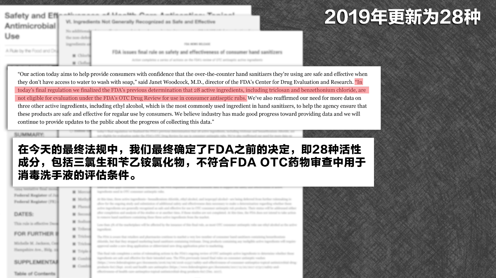 对抑菌洗手液实际作用的怀疑早在2017年美国FDA(食品和药品监督管理局)发布的报告中就有所体现。该报告认为目前并无任何证据表明抑菌类产品有比普通类有更好的抑菌效果,并且长期使用抑菌类产品而引发的细菌耐药性更值得警惕,因为这可能导致更为严重的细菌滋生。