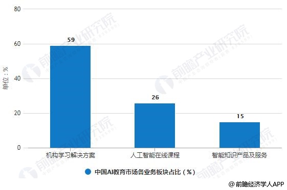 由于国内教培机构更加注重差异化竞争,对于以自适应学习产品为代表的智能学习解决方案需求旺盛,我国机构学习解决方案市场占比相对较高。据Frost Sullivan统计数据显示,2018年,我国AI教育市场中,机构学习解决方案占比约59%,人工智能在线课程和智能知识产品及服务分别占比26%、15%。