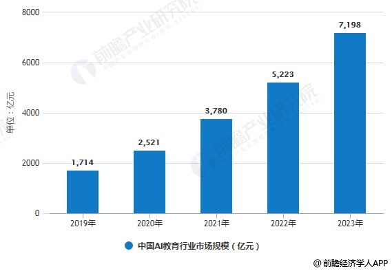 国务院《新一代人工智能发展规划》提出,要利用智能技术加快推动人才培养模式、教学方法改革,构建包含智能学习、交互式学习的新型教育体系。前瞻分析认为,在政策的推动下,未来AI教育将有广阔的发展空间,预计到2023年,我国AI教育市场规模超7000亿元。