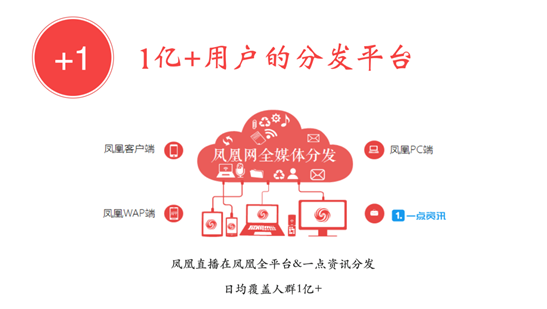 而在内容分发方面,来自凤凰新闻APP、凤凰网PC及WAP端数以亿计的流量,另外,有一点资讯这个分发平台的加持,4个分发渠道日均覆盖用户1亿+。