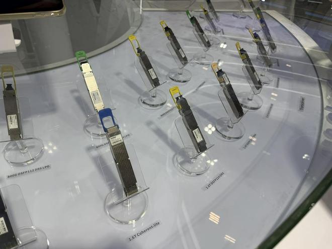 财联社记者注意到,光博会期间的信息通信展集中展出了各类光/电芯片、光器件、光模块、光纤/线缆等产品。而作为算力中心的“神经网络”,光模块不仅在二级市场备受关注,更是展会“顶流”。
