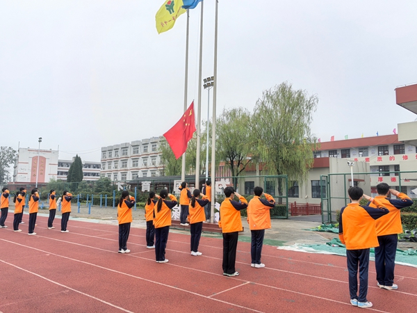 晨光熹微,清风拂过。周集中学操场内,师生肃立,五星红旗在雄壮的国歌声中冉冉升起,拳拳爱国之心在每个人胸中激荡。