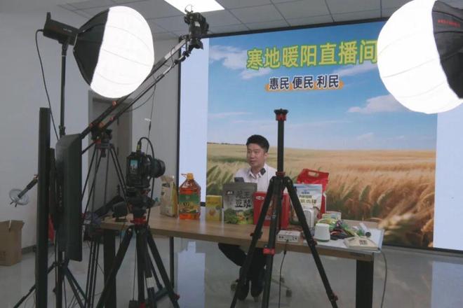 走进绥化市直播电商基地,直播间内热闹非凡。直播达人手持包装精美的北林香米,向直播间的观众热情推介。
