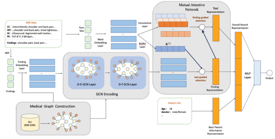 基于电子病历(EMR)的自动诊断技术是近几年非常热门的自然语言处理研究方向之一。然而,传统的自动诊断算法大多采用时序模型,忽略掉了病历当中的实体之间所包含的非常重要的图结构信息。为此,百度利用大规模高质量真实病历挖掘出了一个由医学实体节点和疾病节点所构成的医疗图谱,并在这个图谱基础之上利用图卷积神经网络(GCN)来建模病历当中的图结构信息。除此之外,还通过一个双向的注意力机制模拟医生看病的流程,按序分别强化了病历实体和文本当中的重要信息,提升了模型的准确率和可解释性。该模型已被应用至中国超过百家基层医疗机构的信息系统中,以提升医生看病的效率和降低漏诊和误诊的概率。
