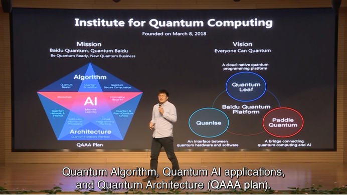 人工智能已是新一轮科技革命和产业变革的重要驱动力,量子计算成为备受瞩目的前沿技术领域,二者的融合孕育出新的研究方向:量子人工智能。百度研究院量子计算研究所所长段润尧博士发表了题为“Baidu Quantum Platform: Towards Quantum Artificial Intelligence”的演讲。在演讲中,段润尧博士重点阐述了百度量子的QAAA战略规划,包含三个核心研究方向:量子人工智能 (Quantum AI),量子算法 (Quantum Algorithm)和量子架构 (Quantum Architecture)。