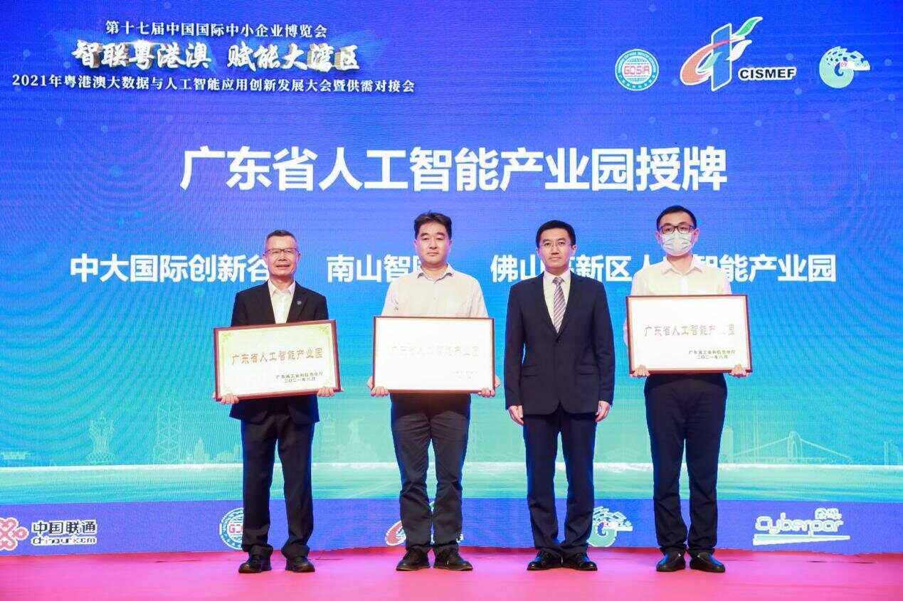 为贯彻省委省政府关于加快人工智能新型基础设施建设的工作部署,落实《广东省新一代人工智能发展规划》和《广东省加快发展新一代人工智能产业实施方案(2018—2020年)》,加快推动我省人工智能产业集聚发展,广东省工业和信息化厅在全省开展人工智能产业园申报工作。经地市推荐、专家评审等程序,确定中大国际创新谷、南山智园、佛山高新区人工智能产业园为第三批广东省人工智能产业园。大会举行了广东省第三批人工智能产业园授牌仪式,省工业和信息化厅副厅长曲晓杰为第三批广东省人工智能产业园授牌。