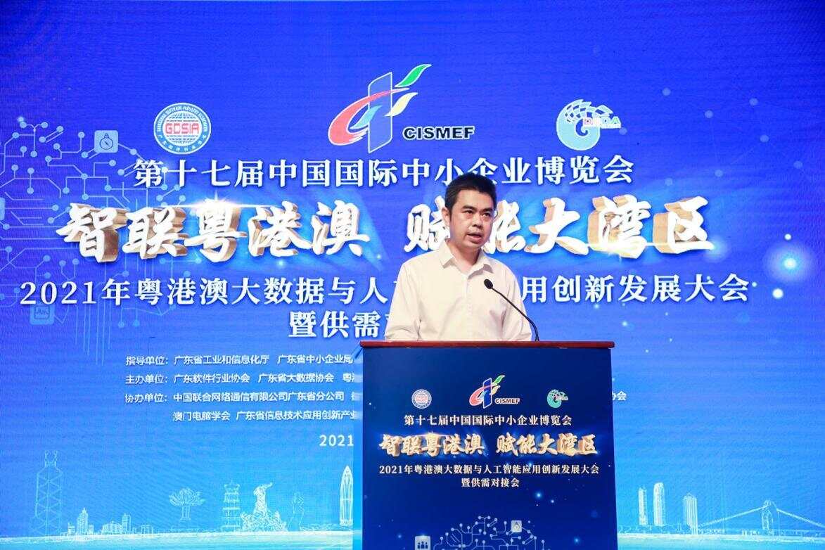 金羊网讯 2021年9月16日,在广东省工业和信息化厅、广东省中小企业局、中国国际中小企业博览会事务局指导下,广东软件行业协会、广东省大数据协会、粤港澳大数据与人工智能产业联盟,与中国联合网络通信有限公司广东省分公司、香港数码港管理有限公司、香港软件行业协会、香港科创发展协会、澳门电脑学会、广东省云计算产业联盟、广东省信息技术应用创新产业联盟、广东省数据中心产业联盟,共同举办的2021年粤港澳大数据与人工智能应用创新发展大会暨供需对接会,在广州琶洲交易会馆隆重召开,本次大会是第十七届中国国际中小企业博览会系列活动之一。
