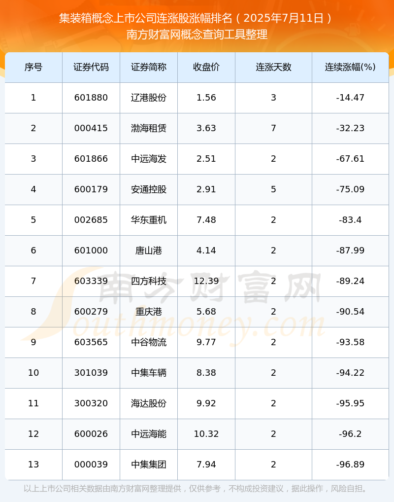 今日集装箱概念上市公司连涨的个股有这些!(2025年7月11日)
