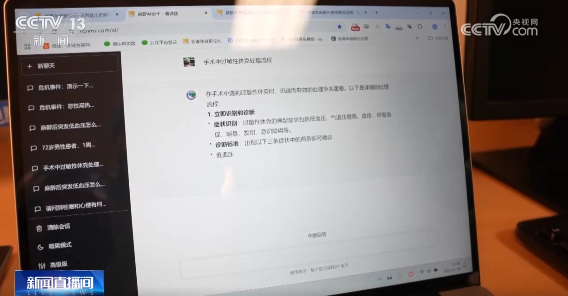 周祥勇介绍,麻醉科要面向所有的学科,这也就意味着麻醉医生需要的知识面要非常广。今年7月,由周祥勇和他的团队主导设计的麻醉AI助手上线,使用者只需通过描述患者的具体诊断情况,就能从海量专业数据中检索出应对之策,从而辅助麻醉师提供临床决策。