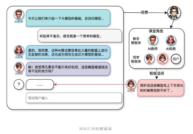 登录教程MAIC是清华大学团队开创的一种全新的在线教育形式。它利用大语言模型(LLM)构建了一个备课过程中,教师可以根据教学目标提供相应的教学资料,MAIC会将其进行解析分析并提供生成题目、提供建议等生成式辅助服务,构建教师智能体与课堂资源基础,减轻教师繁琐备课和重复性讲述工作的负担。教学过程中,学生可以随时提问,教师智能体或助教智能体会给出回答,同时还有多个同学智能体实现课堂模拟,为学生带来更加个性化的交互体验和更加智能化的学练反馈。