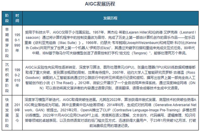 此前,受限于科技水平,AIGC仅用于小范围实验。20世纪90年代以来,AIGC从实验性向实用性逐渐转变,深度学习算法、图形处理单元(GPU)、张量处理器(TPU)和训练数据规模等都取得了重大突破,但受到算法瓶颈的限制,效果仍有待提升。2010年以来,GAN、CLIP、Transformer、Diffusion、预训练模型、多模态技术、生成算法等技术的累积融合,催生了AIGC的爆发。算法不断迭代创新、预训练模型引发AIGC技术能力质变,多模态推动AIGC内容多边形,使得AIGC具有更通用和更强的基础能力。