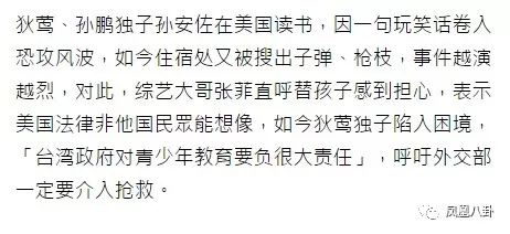 孙安佐的新闻一出顿时引起轩然,登上了台湾娱乐新闻的榜首,台湾娱乐圈的综艺大哥张菲还站出来声援狄莺夫妇,要求救救孩子。