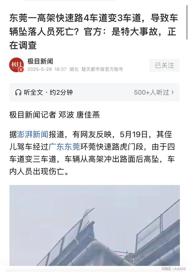 特大事故!东莞车辆冲出高架桥家属质疑4车道变3车道有重大缺陷
