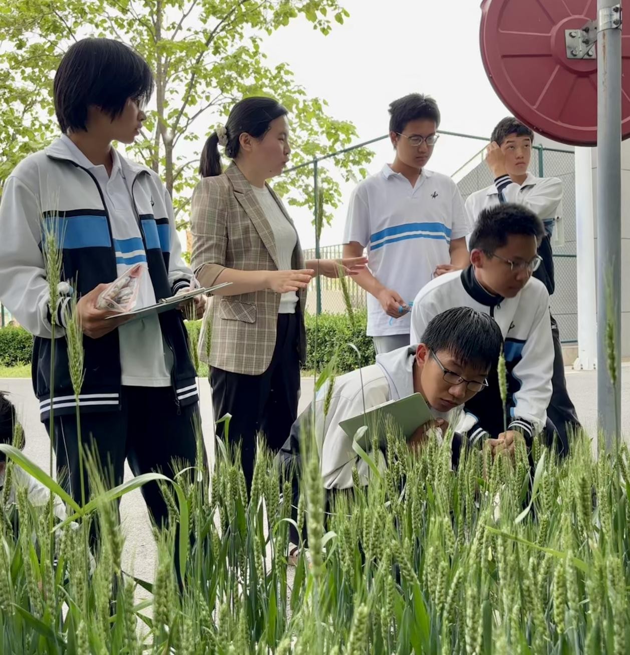晨光映照下,北京市第一六一中学生态园里一片生机,初中生俯身麦田,专注测量土壤温湿度、记录小麦株高……刚刚过去的一学期里,这片冬小麦成了孩子们的“责任田”。施肥、松土、分析生长数据,在老师引导下,大家深入探究冬小麦生长习性,触摸生命科学的脉动。