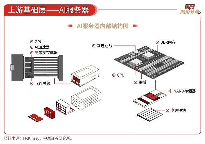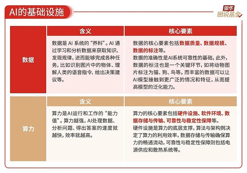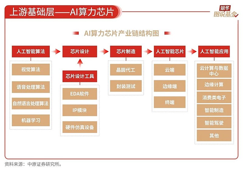 15、AI算力芯片是上游基础层中最重要的硬件设施,为AI服务器提供算力的底层支撑,具备强大的并行计算能力,能够快速处理大规模数据和复杂的神经网络模型,并实现人工智能训练与推理任务。